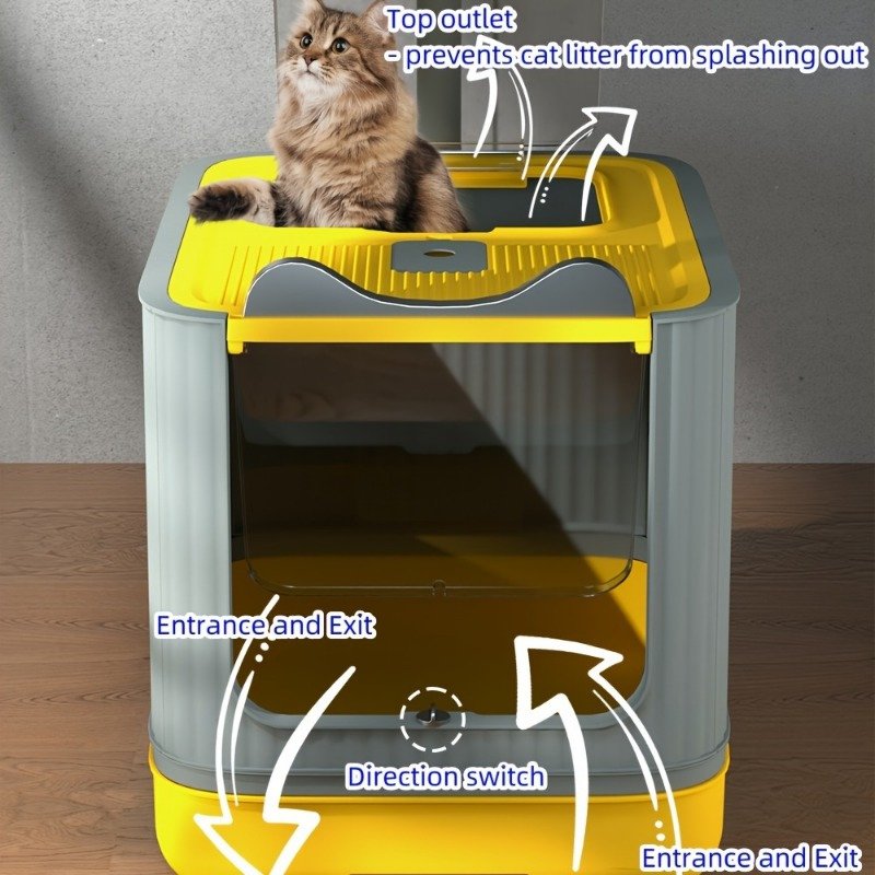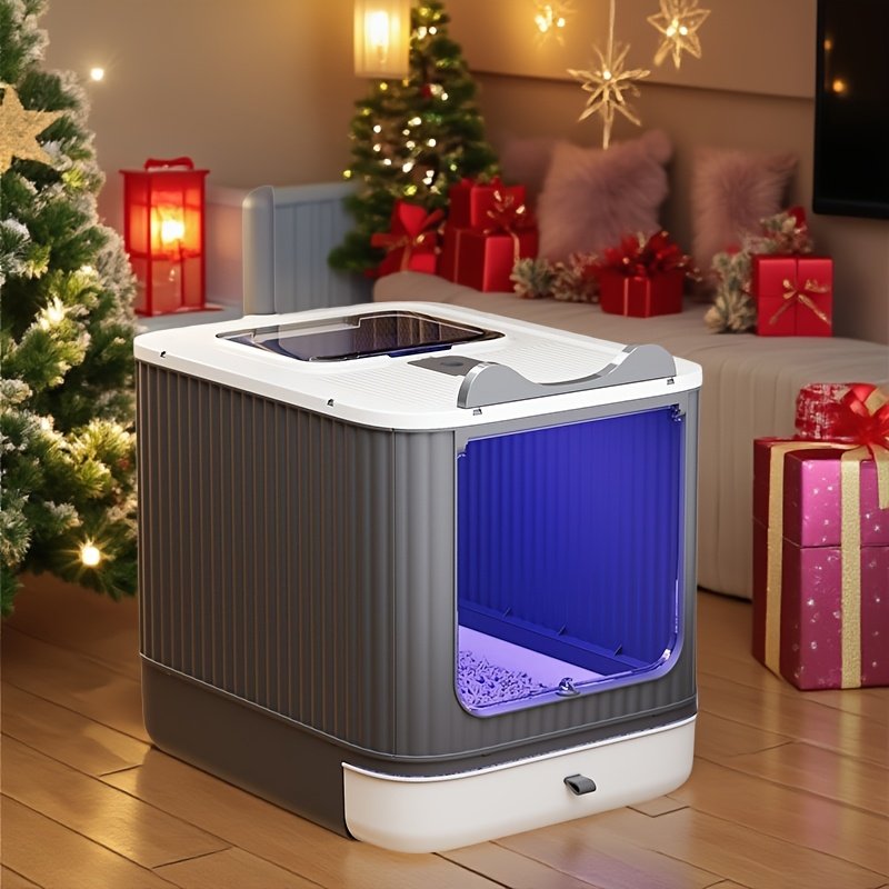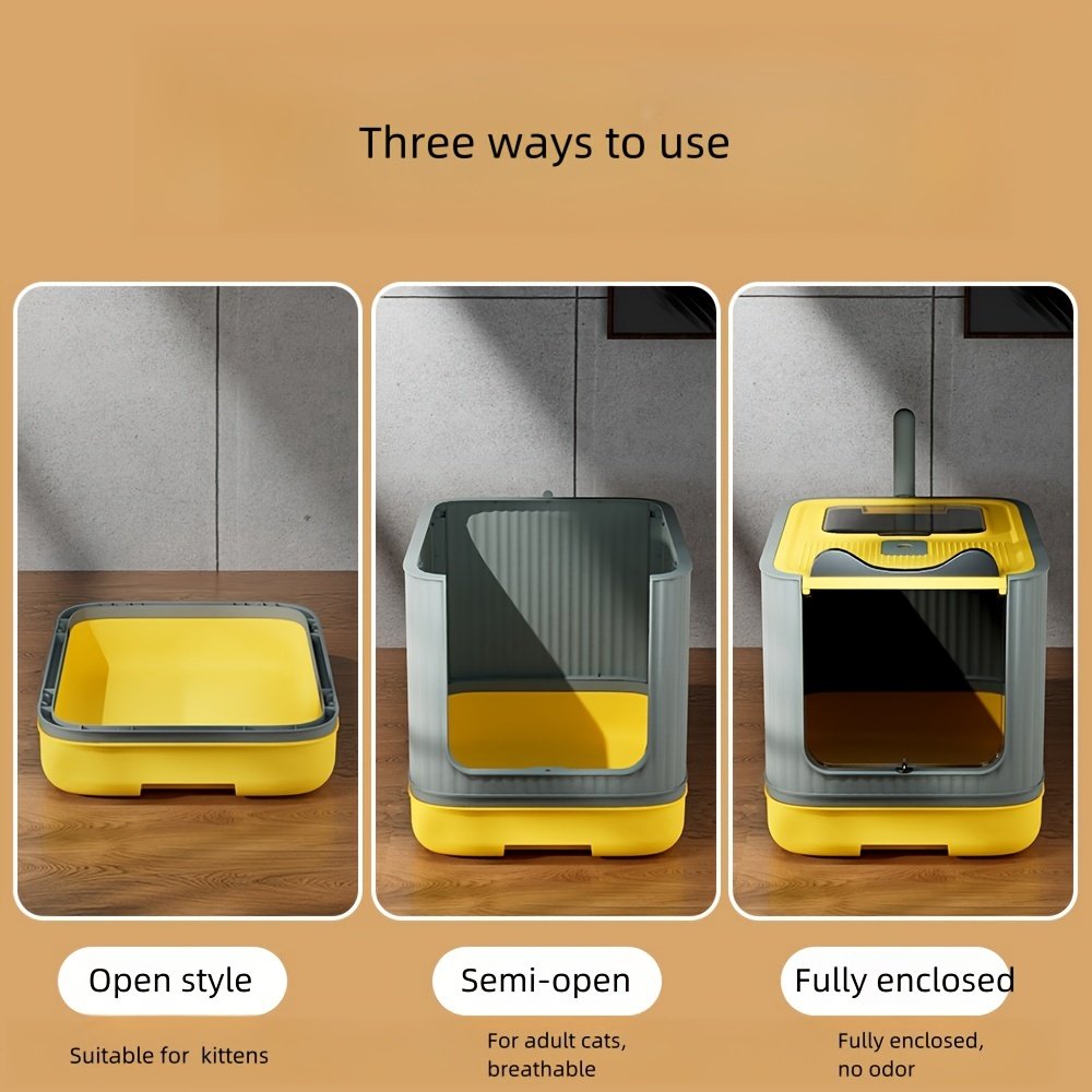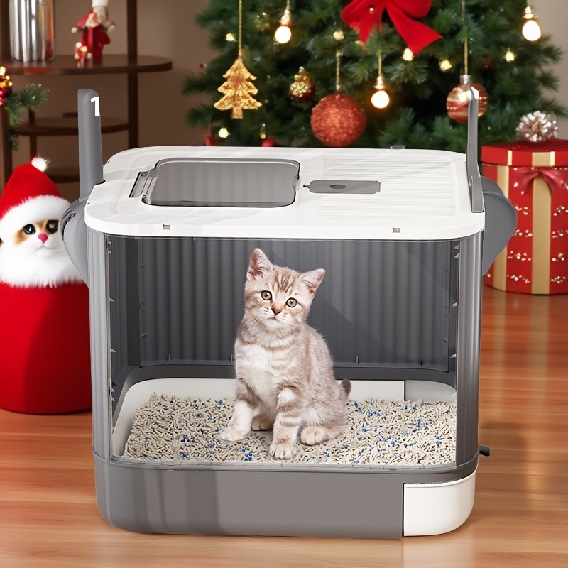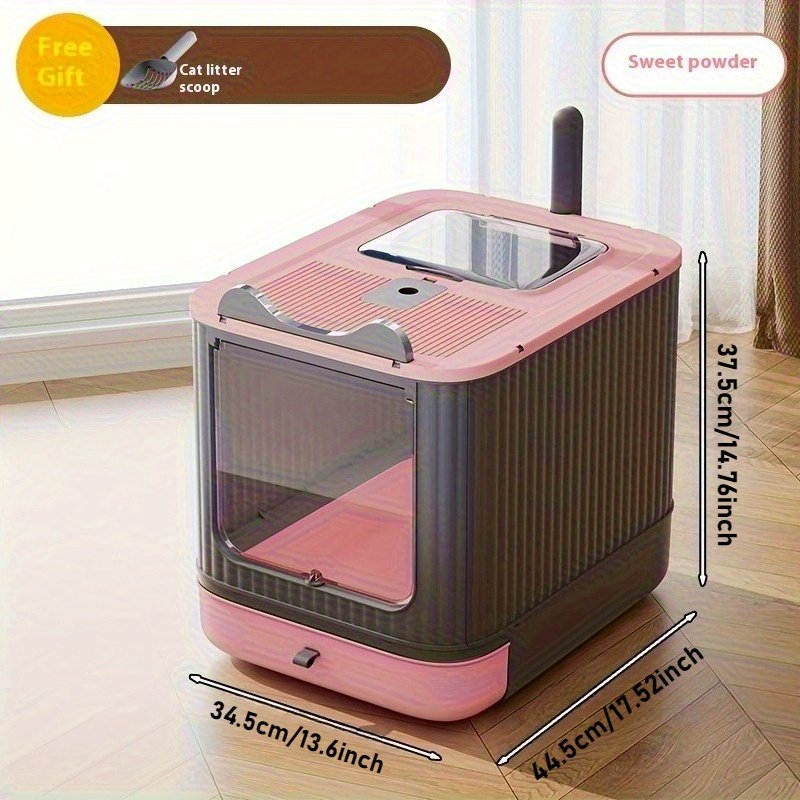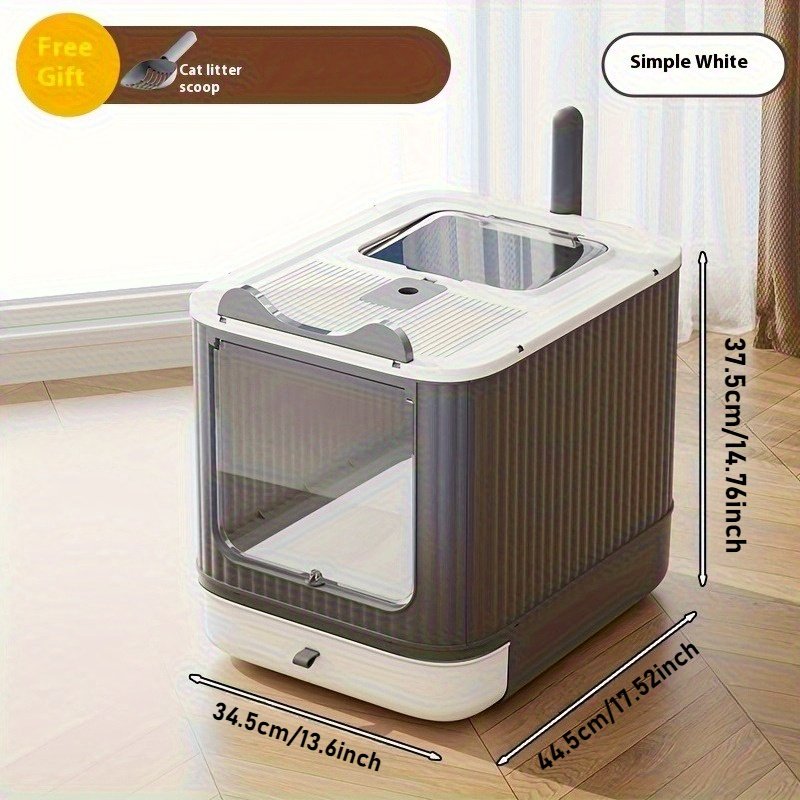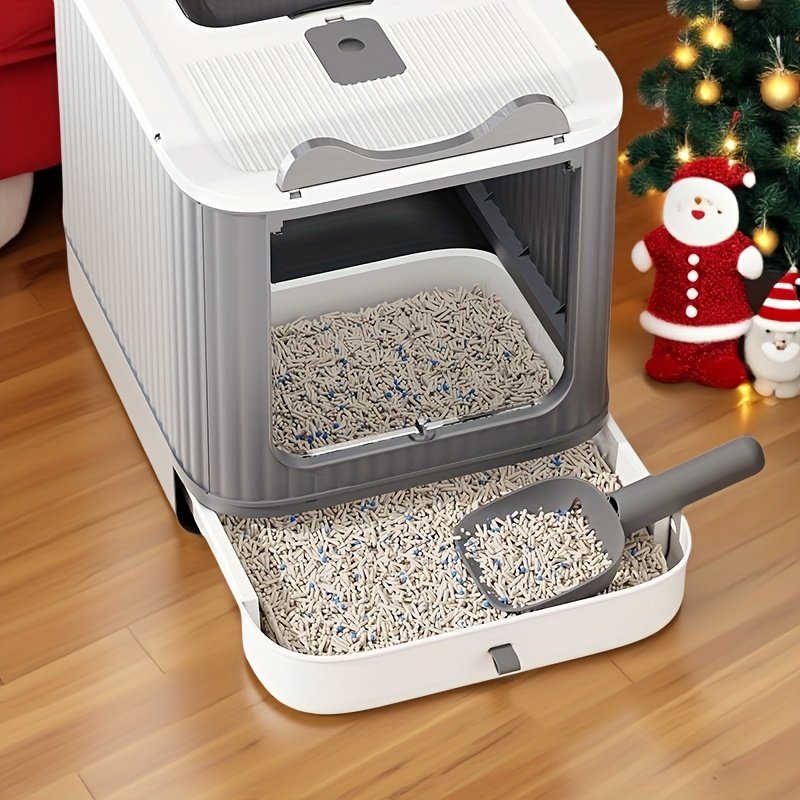 [Totalmente Cerrado y a Prueba de Salpicaduras] Caja de arena cubierta XL diseñada para múltiples y grandes gatos. Cuenta con un sistema de cajón fácil de limpiar y orificios de ventilación para un control superior de olores. Incluye una pala gratis para un mantenimiento sin complicaciones